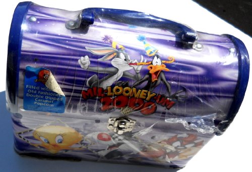 Mil-looney-um 2000 Lonney Tunes Domed Tin Lunch Box Filled with 6oz.double Dipped Caramel Popcorn Specification