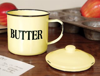 yellow butter cup mug enamelware vintage look without the feel add the country decor to any home see the matching popcorn bowl from the same line. size 3" x 3-1/2" x 3-1/2"
